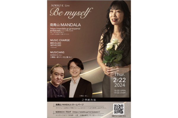 NORIKO K 2月 22 Thu 2024 <Be Myself> NORIKO K (Vo) 大貫祐一郎(Pf) 村上聖(B) 開場18:00 開演19:00 入場 ¥5,000 +1drink別 NORIKO K 入場予約はこちらへ Tweet Share +1 Hatena Pocket RSS feedly Pin it 前のスケジュール 次のスケジュール