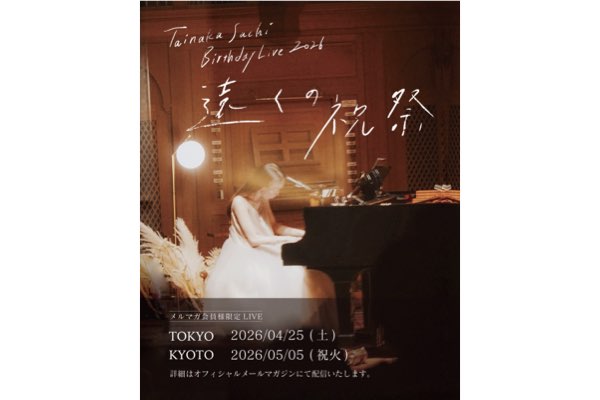 <day> タイナカ彩智 4月 25 Sat 2026 タイナカ彩智 メルマガ会員様限定Live TainakaSachi Birthday Live 2026「遠くの祝祭」 毎年恒例で開催しております、メルマガ会員様限定Birthday Live。 今年は20周年のアニバーサリーを終え、新たな年代へと突入する節目の年。そっと、満ち足りた時間をお届けいたします。 詳細はこちらへ Tweet Share +1 Hatena Pocket RSS feedly Pin it 前のスケジュール 次のスケジュール
