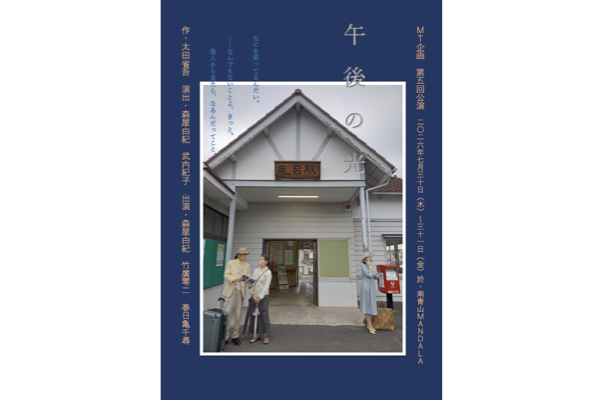 MT企画 第5回公演 「午後の光」 7月 30 Thu 2026 MT企画 第5回公演 「午後の光」 作 太田省吾 演出 森屋由紀 武内紀子 出演 森屋由紀 竹廣零二 春日亀千尋 7月30日 開場19:00 開演19:30 7月31日 1st 開場14:30 開演15:00 2nd 開場18:30 開演19:00 入場 ¥4000 +1drink別 予約はこちらへ Tweet Share +1 Hatena Pocket RSS feedly Pin it 前のスケジュール 次のスケジュール