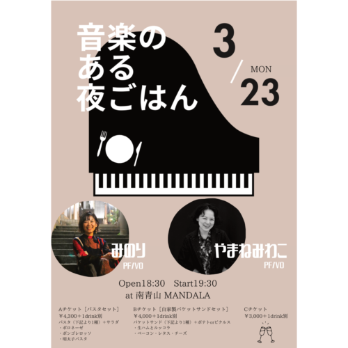 入場 ¥5700(1drink付) 学生¥3700(1drink付)